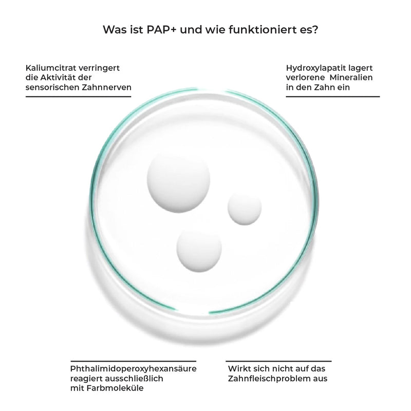 "Erfahre alles über die wissenschaftlichen Hintergründe der Zahnaufhellung und insbesondere der PAP-Formel, welche bei der Herstellung unserer Zahnaufhellungsprodukte zum Einsatz kommt."